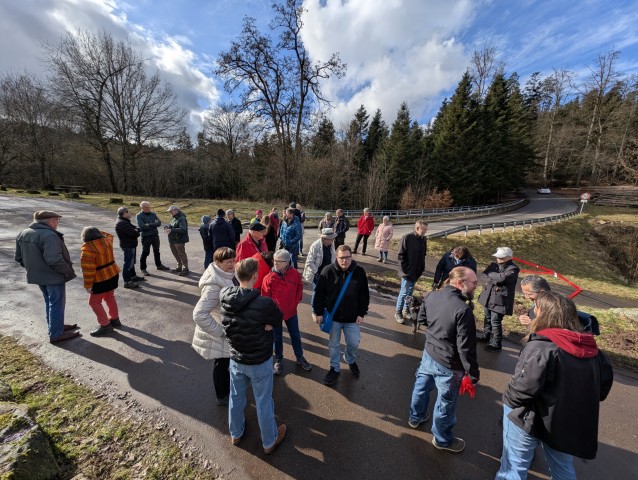 Da musste man sich schon Sorgen machen, ob der Glühwein auch reicht, den sollte es nämlich am Ende der Rundwanderung zum Aufwärmen geben. Auf Einladung des Ortsvereins waren vierzig interessierte Bürgerinnen und Bürger gekommen, um zusammen mit Saskia Esken und Daniela Steinrode durch den Gerechtigkeitswald zu wandern. Die rege Teilnahme war nicht nur dem trockenen Wetter geschuldet, sondern sicher auch der Brisanz des Themas. Das im Gerechtigkeitswald ausgewiesene sogenannte Windvorranggebiet für Windkraftanlagen (WC 4) wollte man sich doch erlaufen und einmal selbst ansehen.
